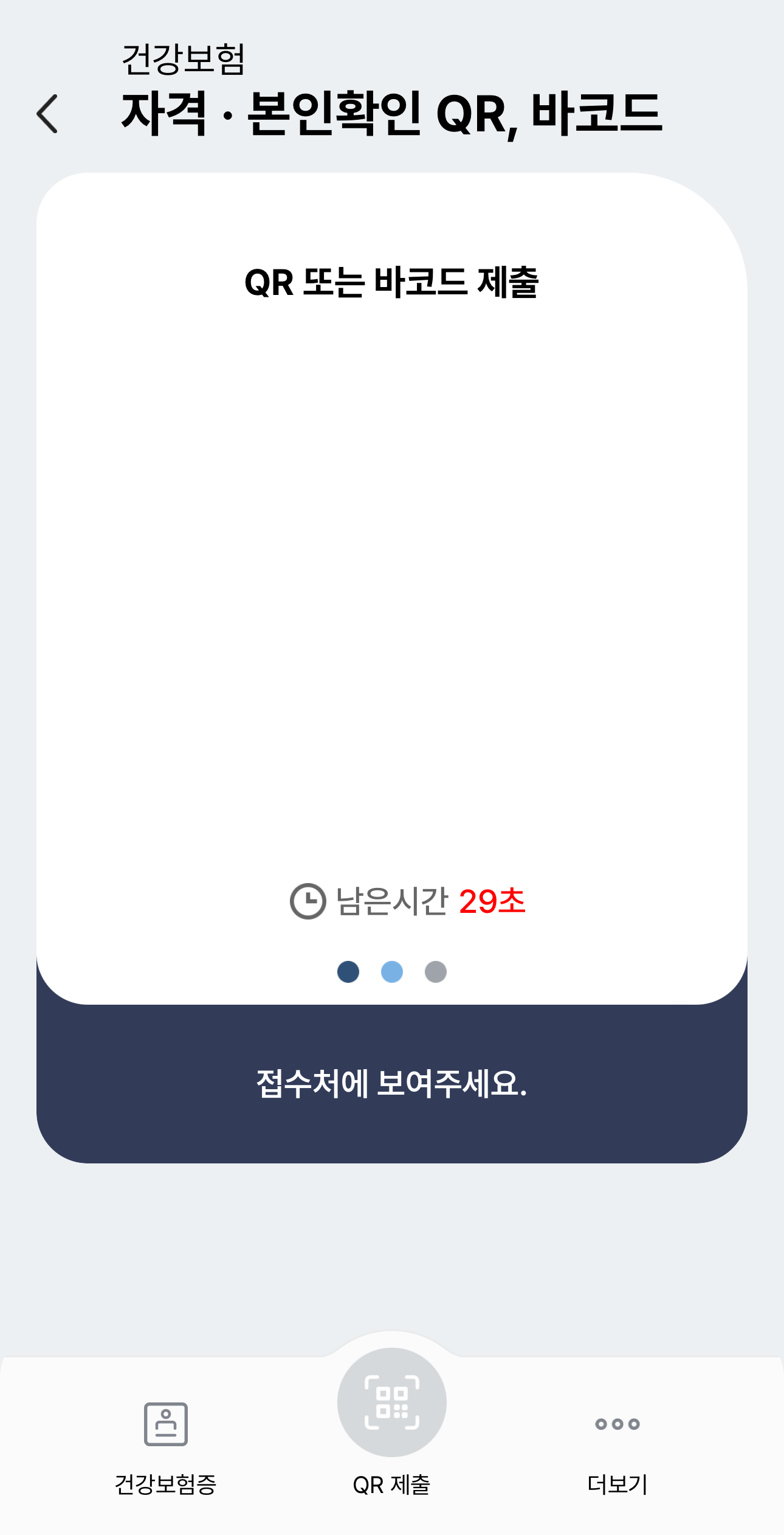 본인 인증을 완료 후 4자리의 비밀번호를 설정하면 바로 모바일 건강보험증이 발급됩니다. 이후 병·의원 방문 시 접수처에서 하단에 QR제출 버튼을 클릭해서 보여주면 손쉽게 본인 인증이 가능합니다.